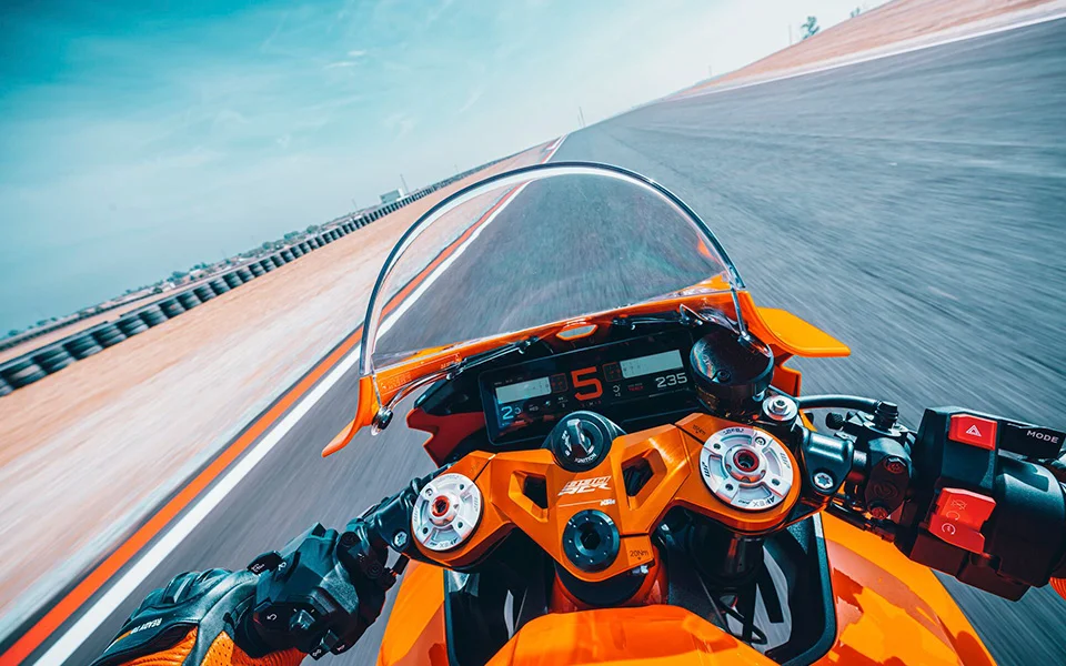 La nueva generación RC se distingue por su chasis de acero con subchasis de aluminio, optimizado para mantener la rigidez y mejorar la agilidad en curvas. Su diseño aerodinámico, desarrollado en túnel de viento, no solo mejora el rendimiento, sino que también refuerza su carácter deportivo. Además, incorpora suspensiones WP APEX, frenos Brembo HyPure de 320 mm, y una moderna pantalla TFT de 8.8 pulgadas que ofrece múltiples modos de conducción: RAIN, STREET, SPORT y CUSTOM, junto con opciones avanzadas como TRACK y ajustes específicos para circuito.