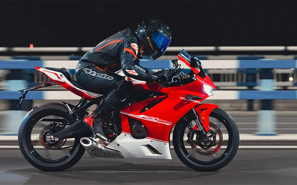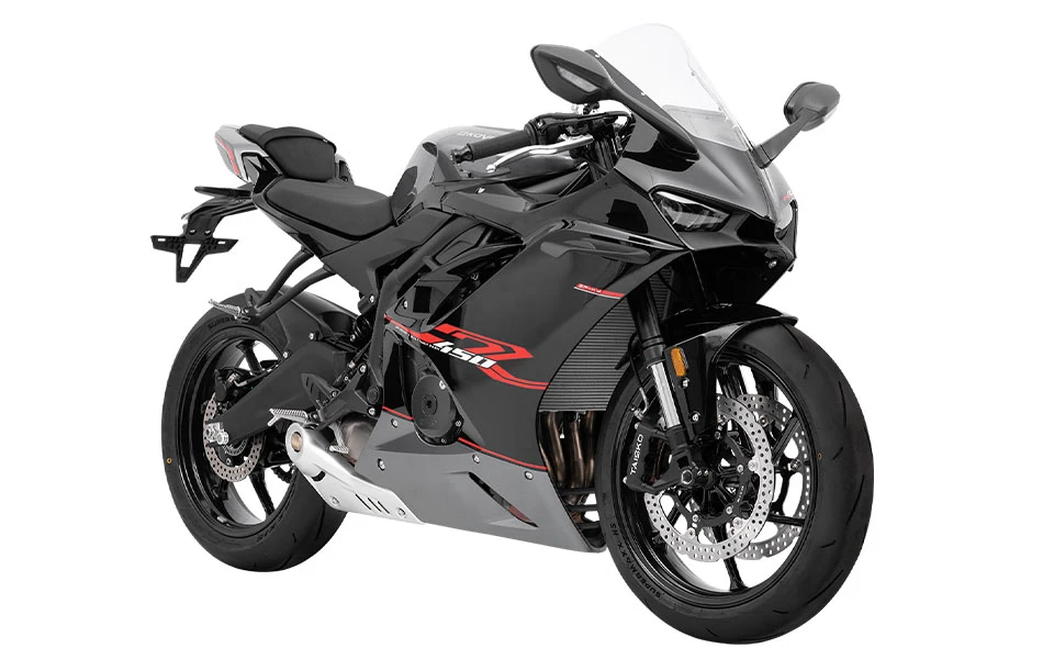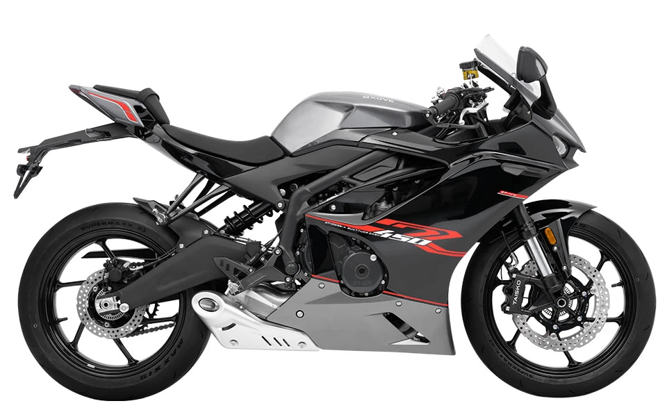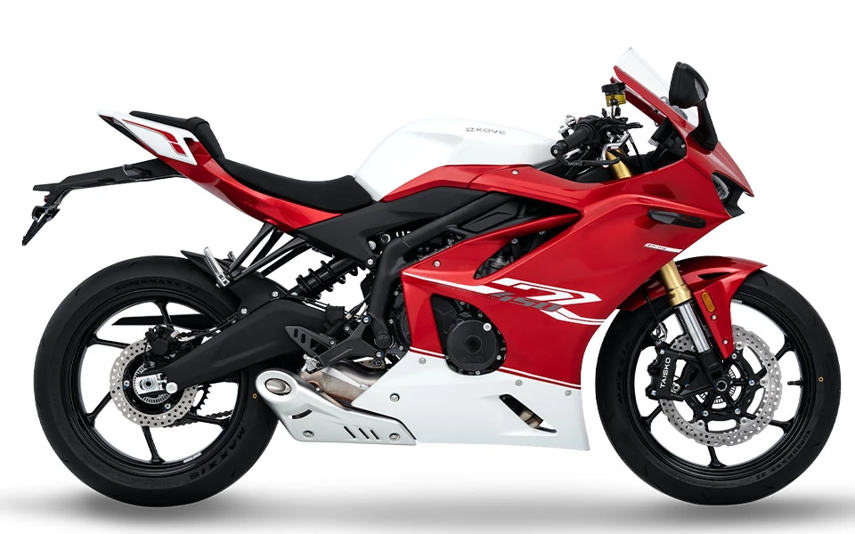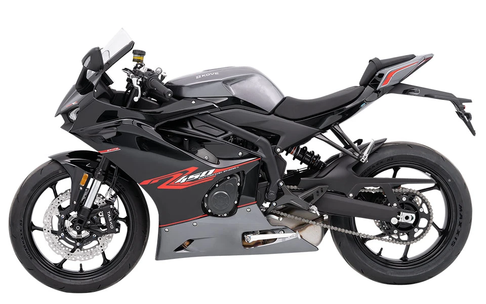 La KOVE 450RR PRO es una moto deportiva de alto rendimiento con motor de 4 cilindros, capaz de entregar hasta 70 HP a 13,000 rpm y alcanzar una velocidad máxima de 220 km/h. Su chasis ultraligero reduce el peso en vacío a solo 165 kg, optimizando la maniobrabilidad y agilidad. Diseñada para los amantes de la velocidad, combina potencia, tecnología y un diseño pensado para la pista.