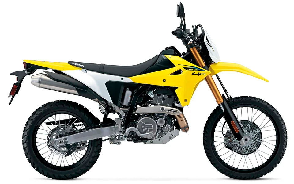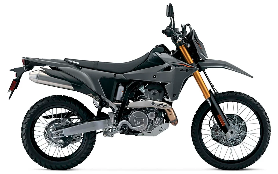 Por otro lado, la DR-Z4S marca el regreso de una moto muy querida por los fanáticos del enduro y el doble propósito. Ahora incorpora inyección electrónica, modos de manejo, control de tracción, ABS desconectable y estética renovada con luces LED, manteniendo su robusto motor monocilíndrico de 398 cc. La versión DR-Z4S+ añade protección extra con placa de deslizamiento, guardamanos y acabados más agresivos.